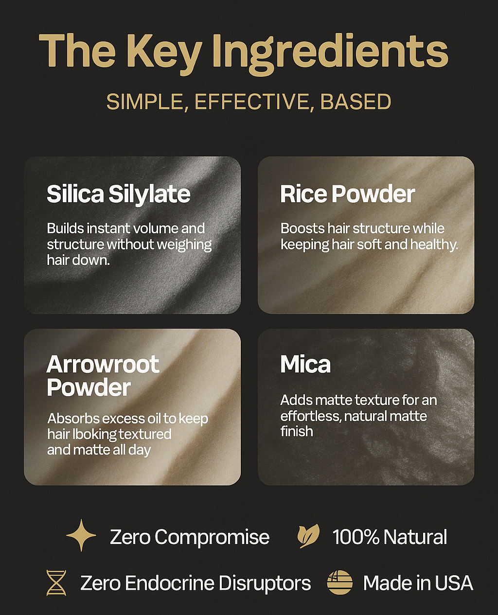 Most texture powders weigh your hair down and make it overly stiff and hard. The BASED Texture Powder gives you the hold & volume your hair needs, without overly stiffening or drying your hair.